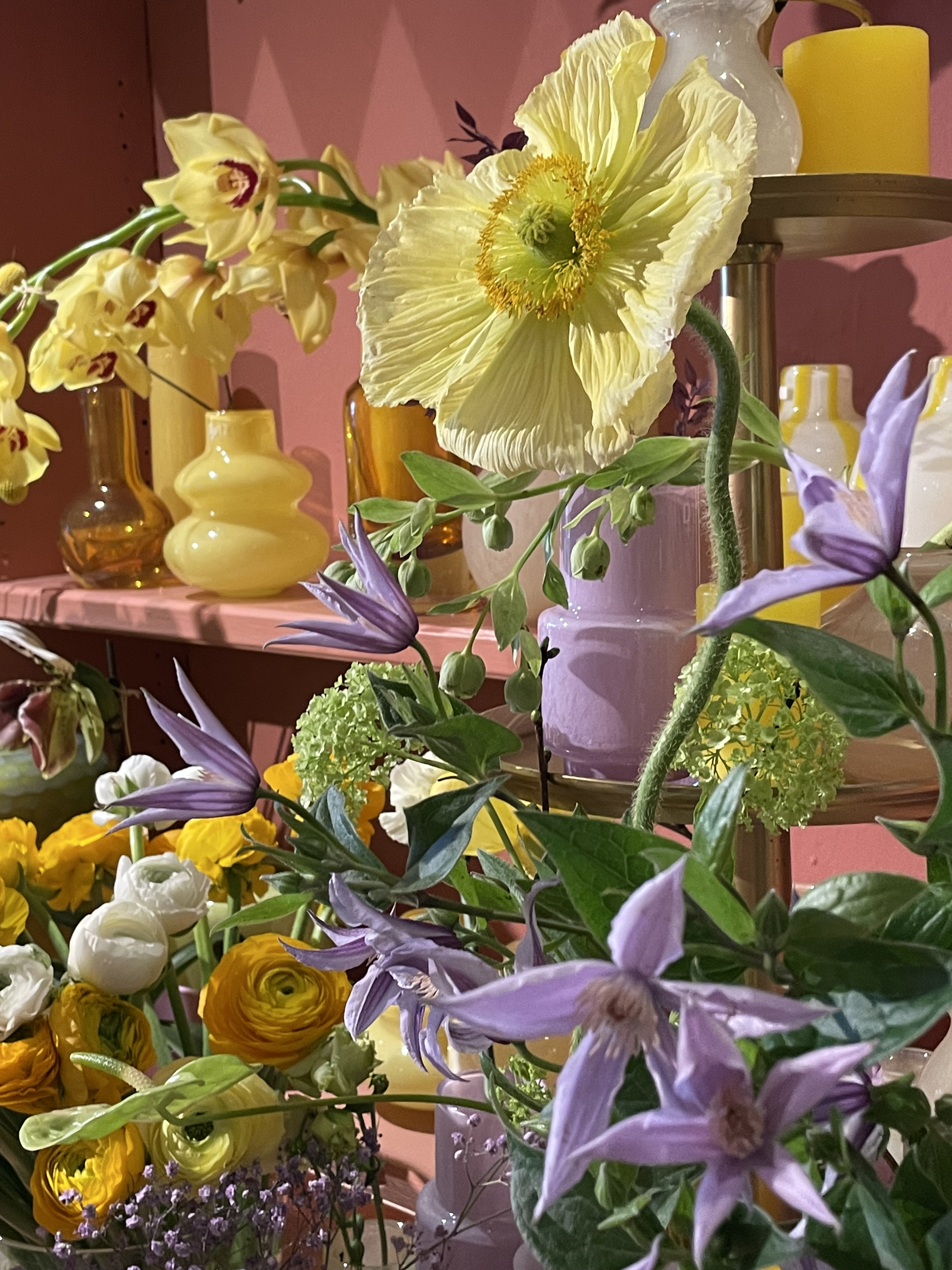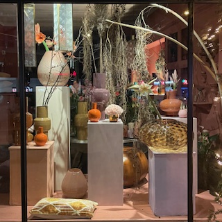 Wir lieben die Mischung aus unseren edlen Glasvasen und Keramik, besonderem Interieur mit Vintageteilen und Kuriositäten.